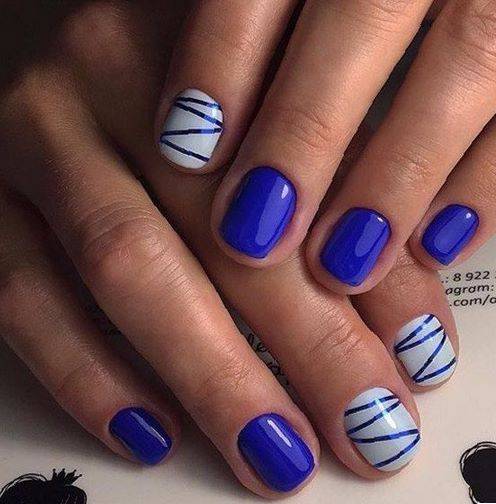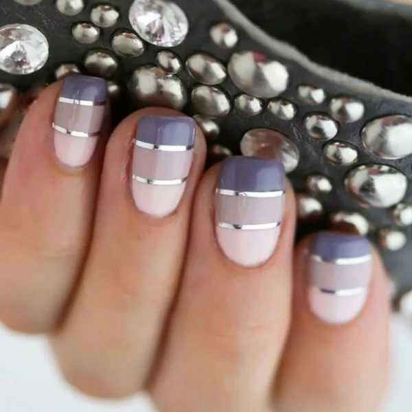 Короткий полосатый маникюр, дизайн коротких ногтей с лентой: фото 2021-2022