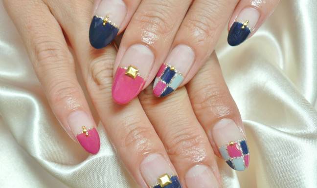 Короткая длина — это дань моде или строгое следование требованиям дресс кода компании. Но всем модницам хочется сделать пальчики более длинными, а руки изящными. Это значит, что нужно выбирать вертикальные полоски или ромбики. С их помощью ноготь визуально вытягивается при сохранении исходной длины.