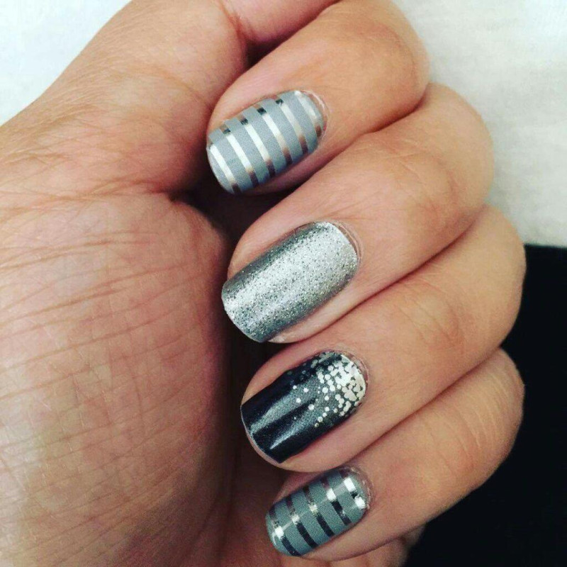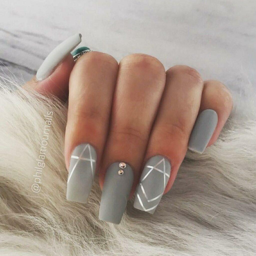 Фольгированные полосы серебристого цвета – шикарное дополнение повседневного и торжественного нейл-арта. Они лаконичны, при этом стильны и креативны, к тому же, прекрасно сочетаются со стразами.