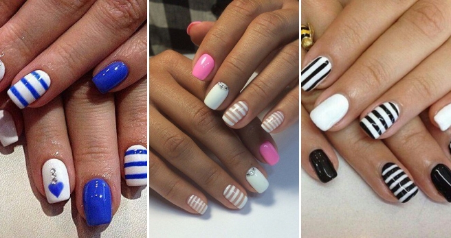 Кроме того, что существуют разные направления в полосатом маникюре, отметить можно и разнообразие форм, в которых можно исполнять рисунок. Полосы можно делать длинными и короткими, горизонтальными и вертикальными, ровными и волнистыми и т.д. Вариантов исполнения этого узора множество — достаточно лишь проявить немного креатива и фантазии.