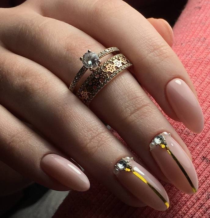 Сложно представить себе торжественный нейл-арт без страз и камней. Эти элементы способны самый будничный дизайн превратить в нарядный. Главное помнить, что в моде – естественность и чувство меры, поэтому щедро инкрустированные ногти могут смотреться старомодно.Маникюр с рисунком более чем уместен для особых случаев. Обладательницы длинных ногтей могут сделать выбор в пользу сложных картин в акварельной технике или использовать готовые слайдеры. Свежим дополнением к картинкам станут икринки, стразы или гелевые капли, имитирующие воду. Небольшие рисунки с геометрическими узорами или анималистическими принтами роскошно выглядят на ногтях любой длины.