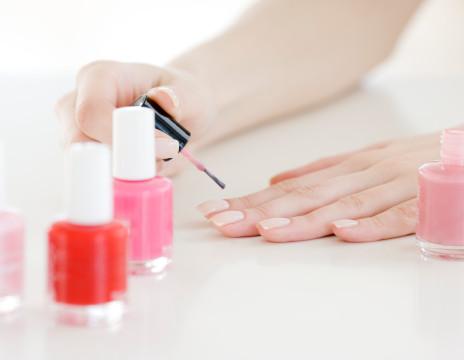 Можно также покрасить ногти, приклеить полосы, а затем снова покрасить лаком другого цвета. Так получают цветные полоски. На окрашенный ноготь приклеить готовые цветные полоски, а сверху нанести закрепляющее вещество.