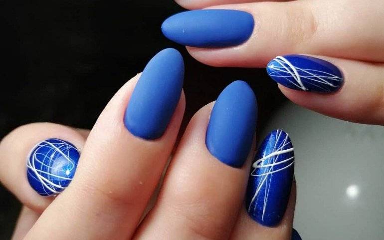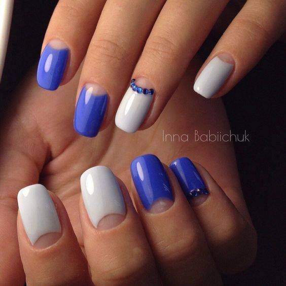 МАНИКЮР СИНИЙ С БЕЛЫМ