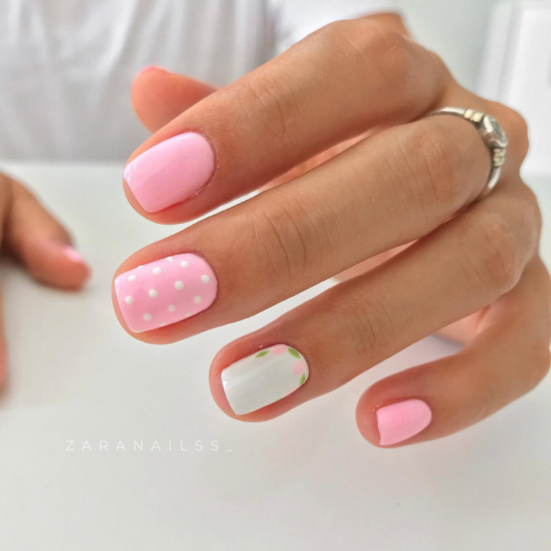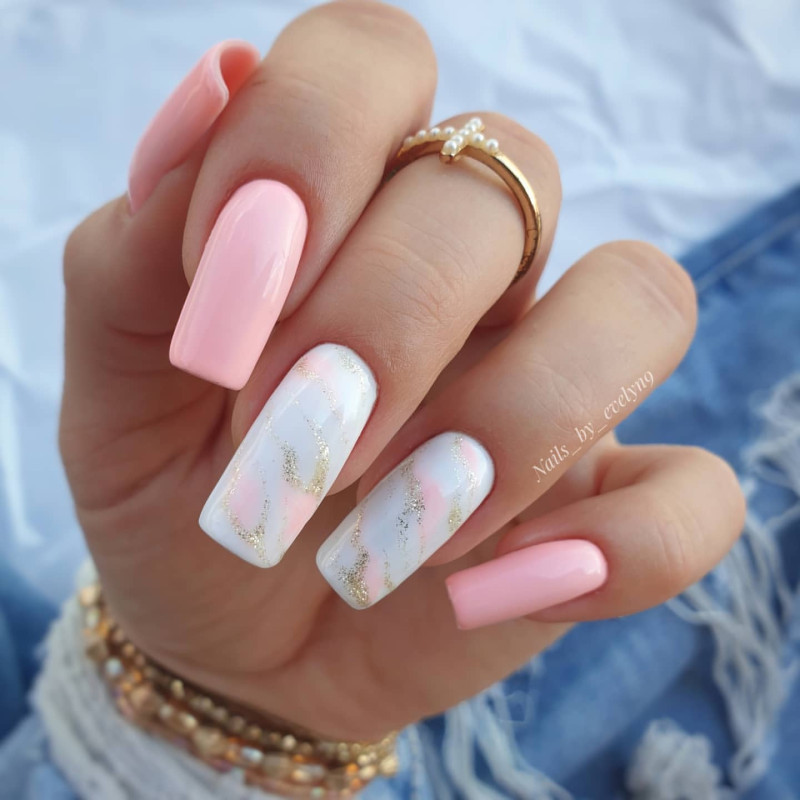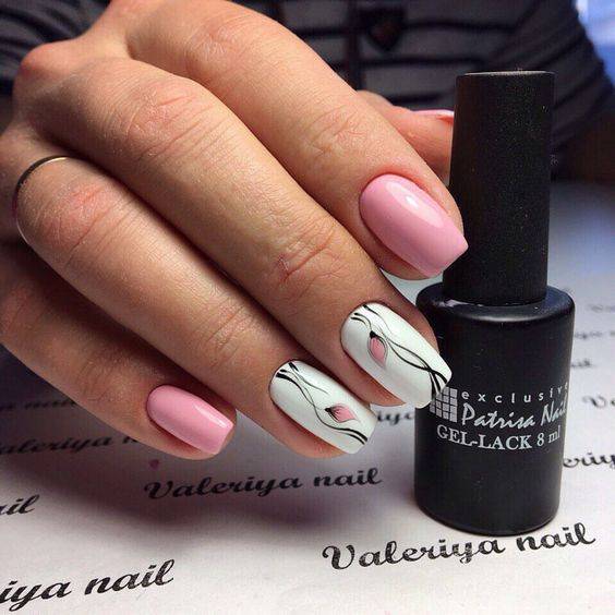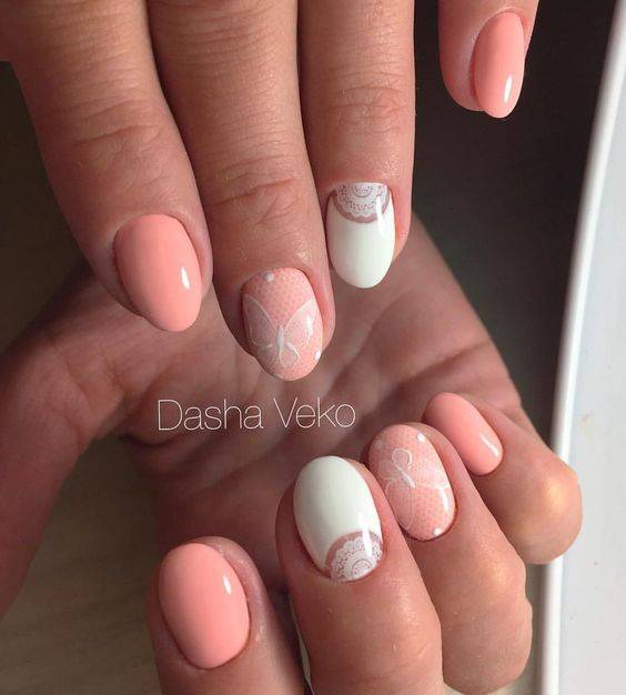 Что касается дизайна ноготков, то наиболее распространенным вариантом двухцветного маникюра является покрытие в пастельной цветовой гамме. Такие оттенки всегда хорошо между собой сочетаются, поэтому такая идея точно понравится новичкам.