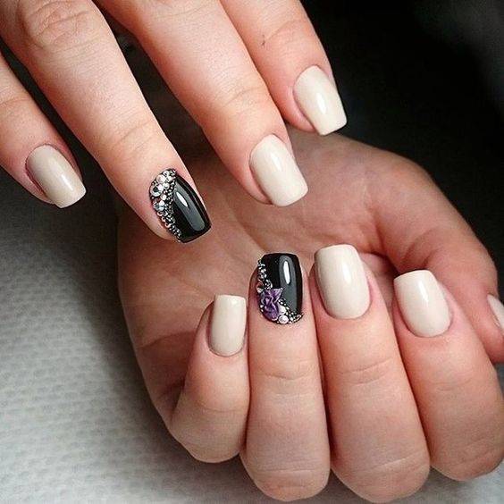А теперь пройдемся по порядку, к ахроматическими оттенкам относится только белый, черный и все оттенки серого цвета. Чаще всего ахроматические оттенки нейл мастера выбирают для основы маникюра или же используют их для дизайна. С ахроматическими цветами в маникюре проще всего комбинировать любые другие цвета, в результате получается яркий контраст и гармония.