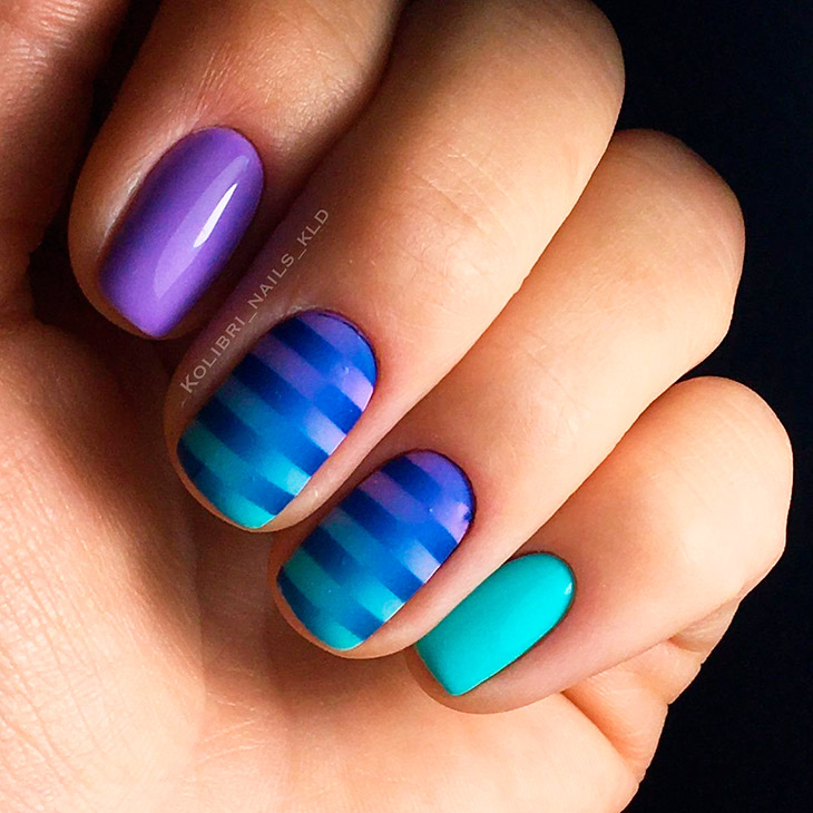 Наверное, каждая девушка знает о существовании маникюра в стиле «омбре». Его главная особенность – плавный переход от одного оттенка к другому. Такой градиент получается при смешивании двух или трех тонов лака. Именно этот дизайн пользуется невероятной популярностью, так как можно комбинировать самые разные цвета. К тому же, переход оттенков может быть не только по вертикали, но и по горизонтали или даже по диагонали.