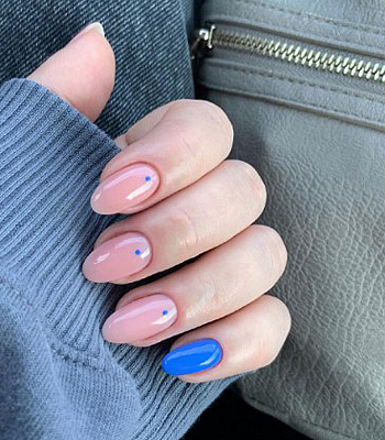 Если вы любите синий цвет, но обстоятельства не позволяют покрыть им все ногти целиком, используйте хитрый ход и сделайте на пастельной основе рисунок в синих тонах.