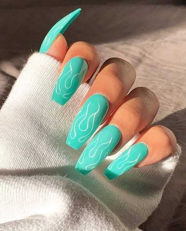 При создании маникюра не стоит бояться экспериментов. Нужно пробовать любые сочетания цветов. Это могут быть различные оттенки красного – розовый, малиновый, пурпурный, а также кислотные цвета. Наиболее популярным в этом сезоне является голубой и бирюзовый оттенки. Ведь самое ясное небо мы видим только летом. Он может такой цвет показаться сдержанным, однако он хорошо будет смотреться с любым нарядом. Яркий летний маникюр может выполняться с нанесением рисунков и аксессуаров.