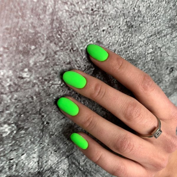 В продаже есть обычные лаки кислотных оттенков, они недолго продержутся на ногтях, но зато получится сделать маникюр самостоятельно без специальных инструментов и оборудования. Средство наносится с помощью кисточки во флакончике в 2 слоя.