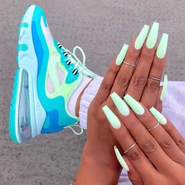 Это воплощение яркости и сочности. Модный маникюр заряжает на позитивные эмоции и дарит отличное настроение. Кислотные оттенки ‒ беспроигрышный вариант лета 2021 года.
