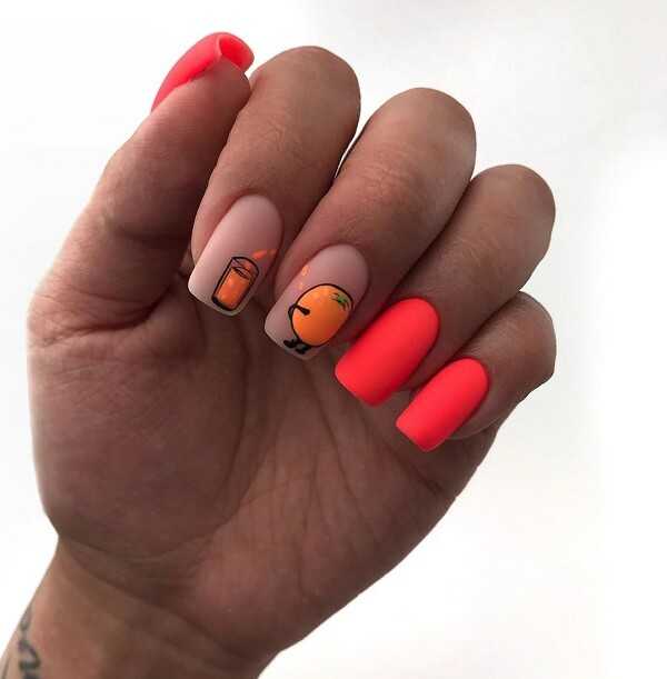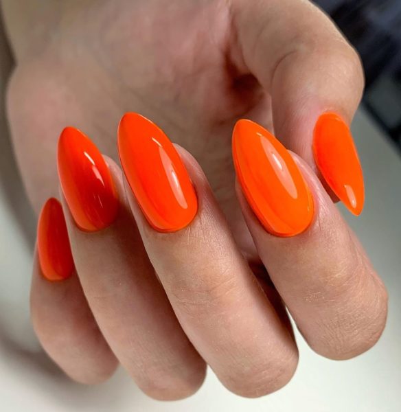 Оранжевый неоновый маникюр отлично сочетается со всеми оттенками гель-лаков. Среди достоинств этого цвета то, что данный оттенок смотрится хорошо как на коротких, так и на длинных ногтях, а так же на всех формах. Он отлично выделит и треугольную, и квадратную, и закругленную форму ногтя. Оранжевый цвет отлично дополнит ваш стильный летний образ.