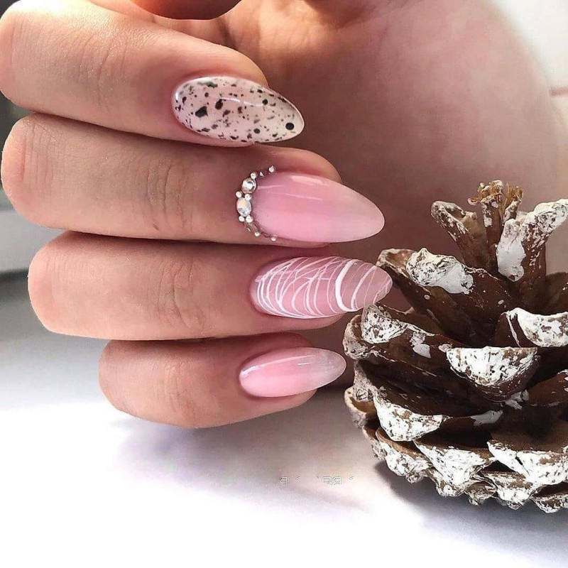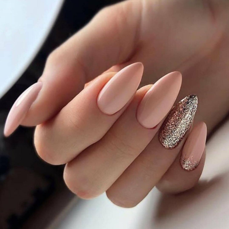 Нюдовый маникюр 2023 — 2024: идеи на миндалевидных ногтях