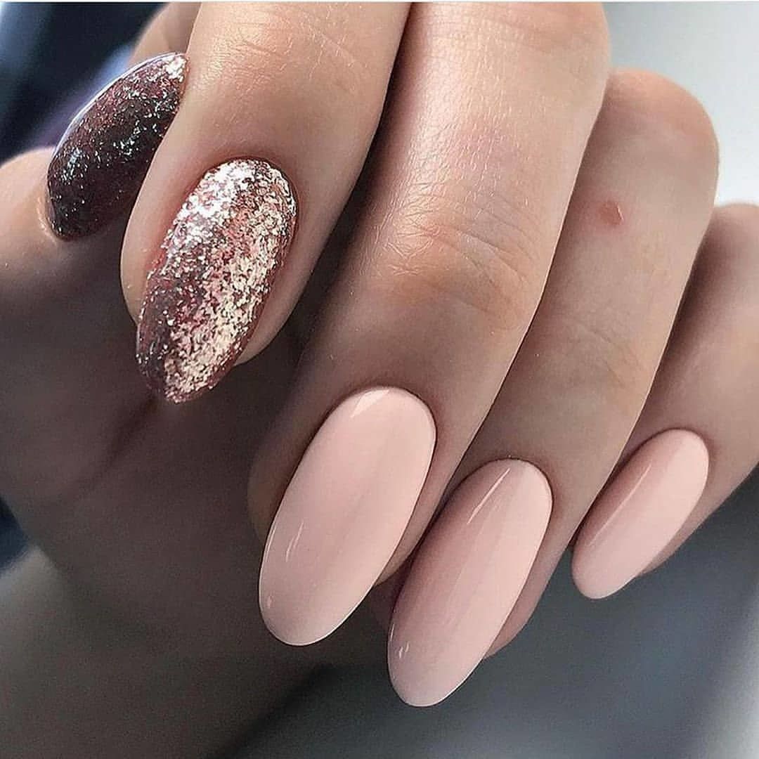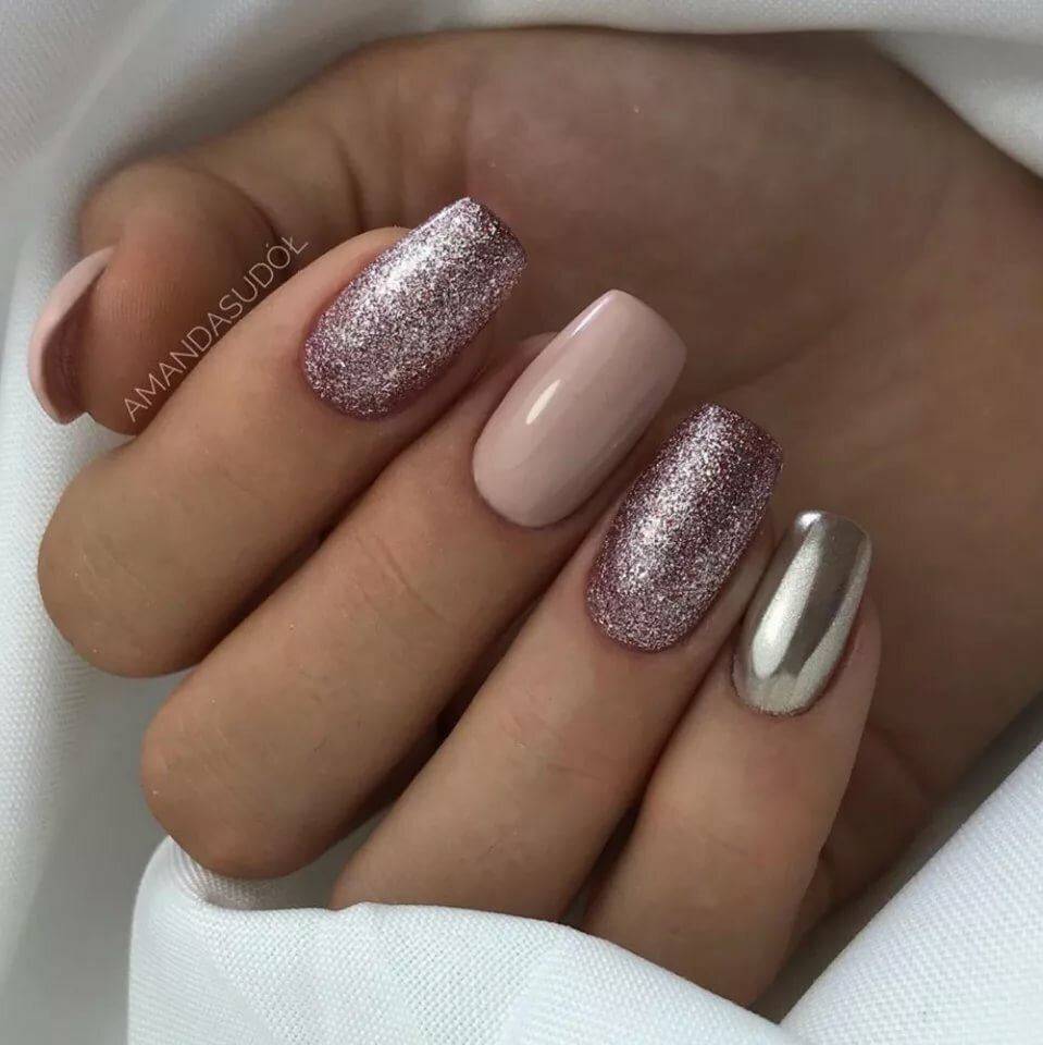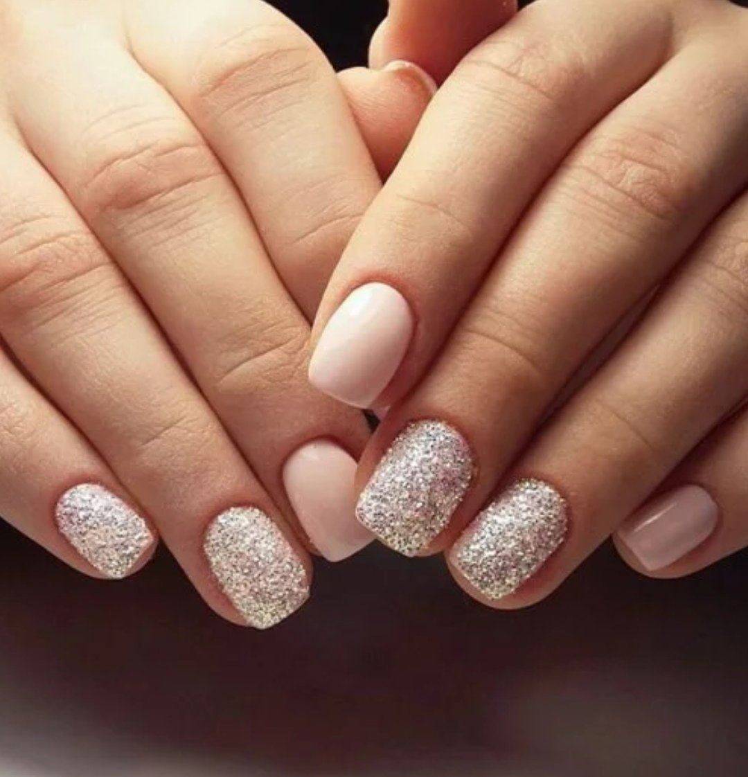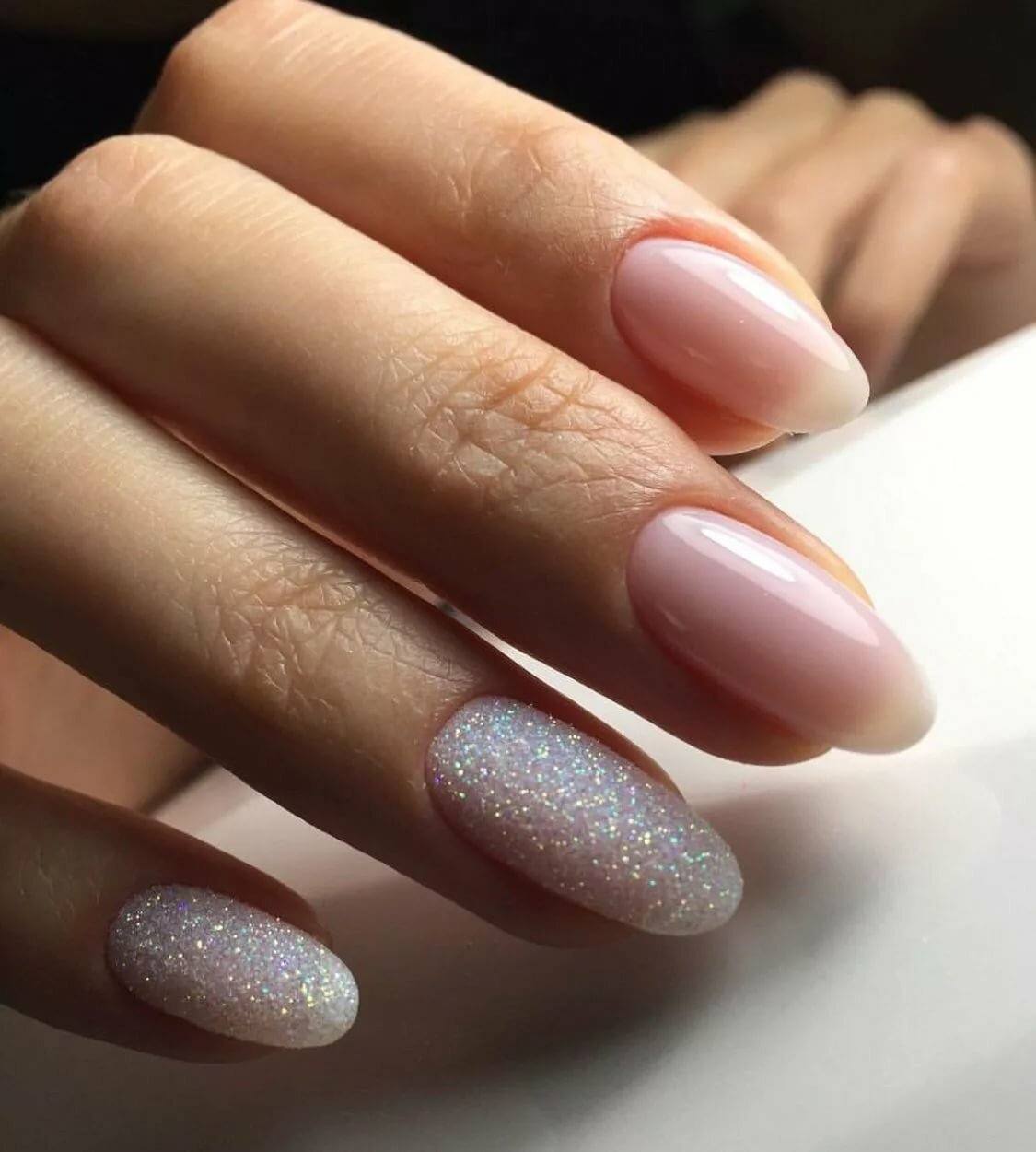 Если вы хотите сделать ногти с ярким акцентом, но при этом на базе нюд, то лучше всего подойдут блестки! Это отличный вариант как для длинных, так и для коротких ногтей. Вот несколько вариантов, которые помогут вам добавить блесток в ваш образ: