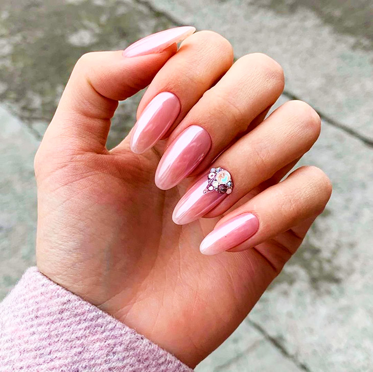 Миндаль — это самая распространенная форма для маникюра в пастельных тонах. На ней практически любой дизайн смотрится выигрышно. Ведь такая форма выглядит вытянутой и визуально удлиняет пальцы.