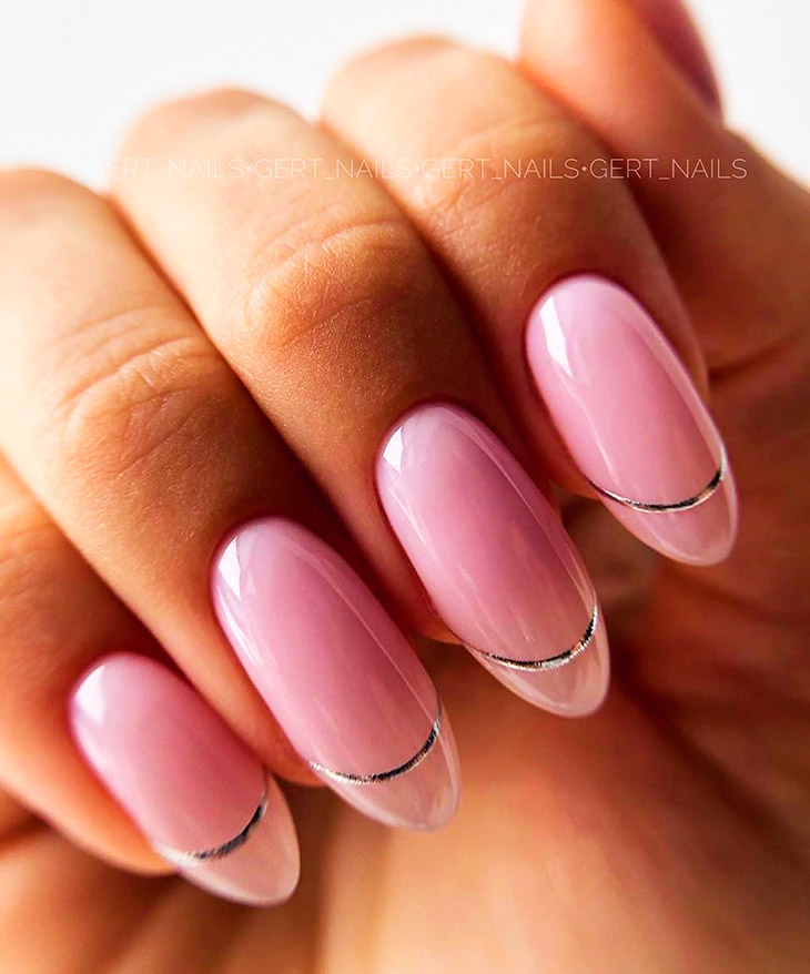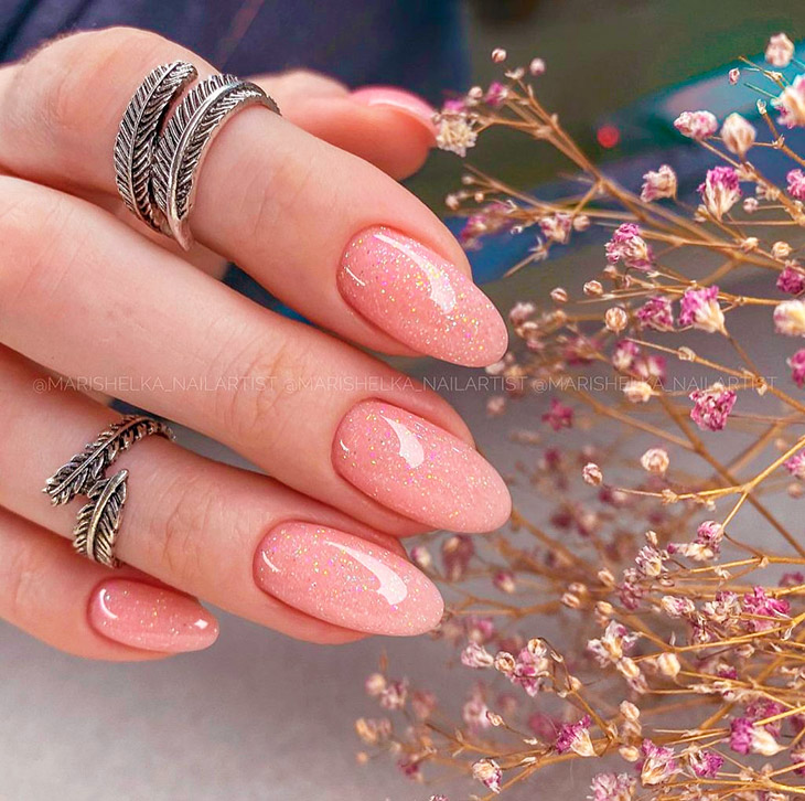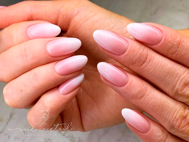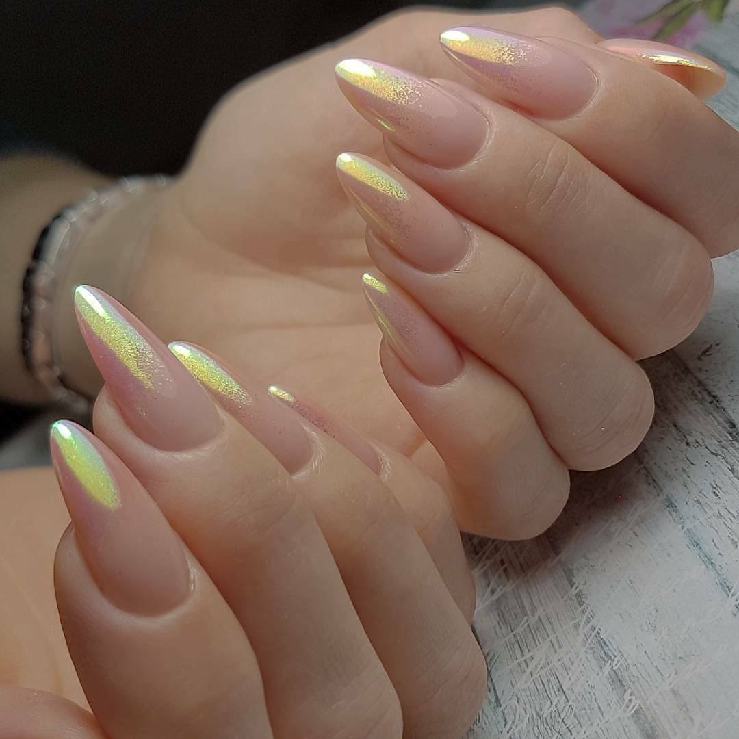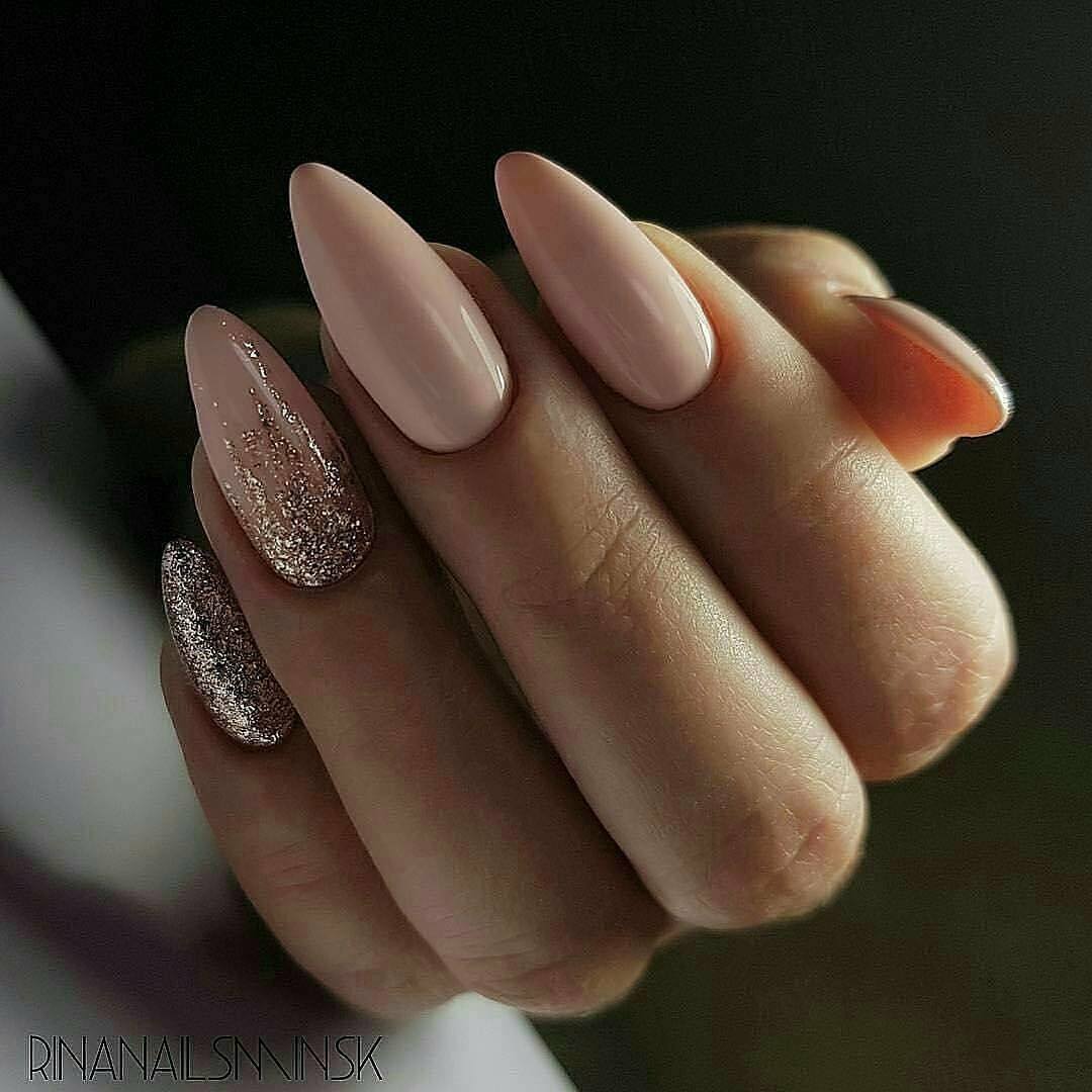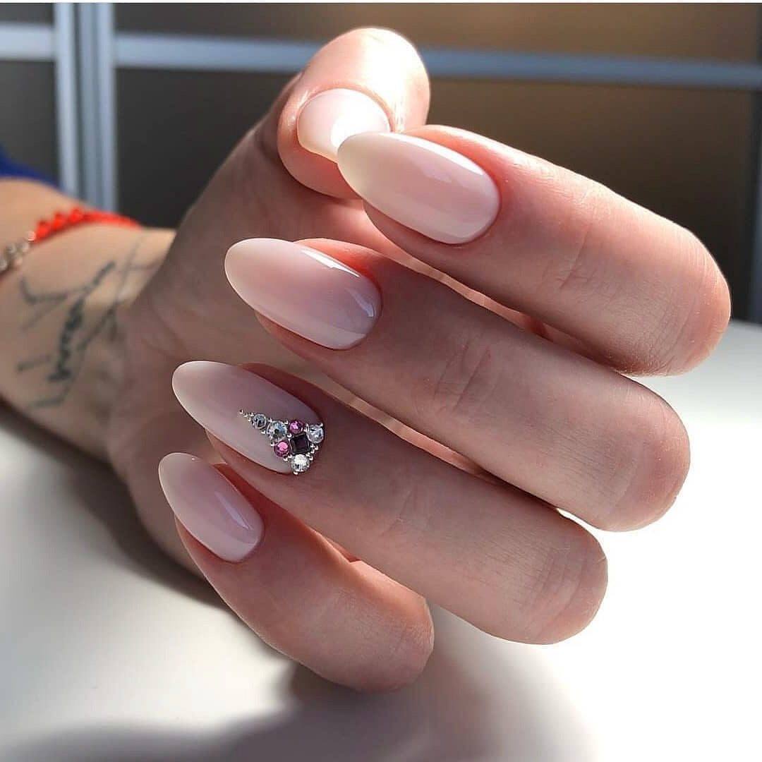 Нюдовый маникюр 2023 — 2024: идеи на миндалевидных ногтях