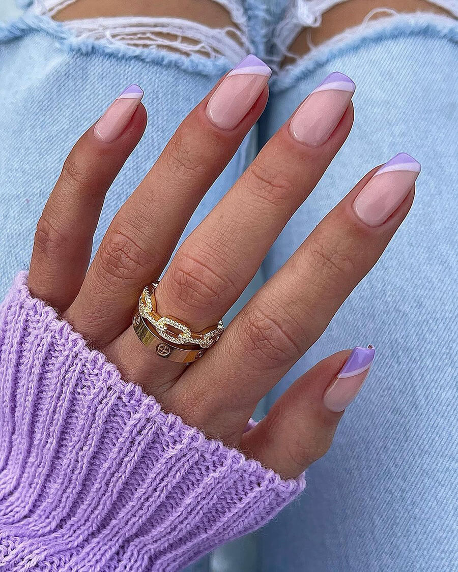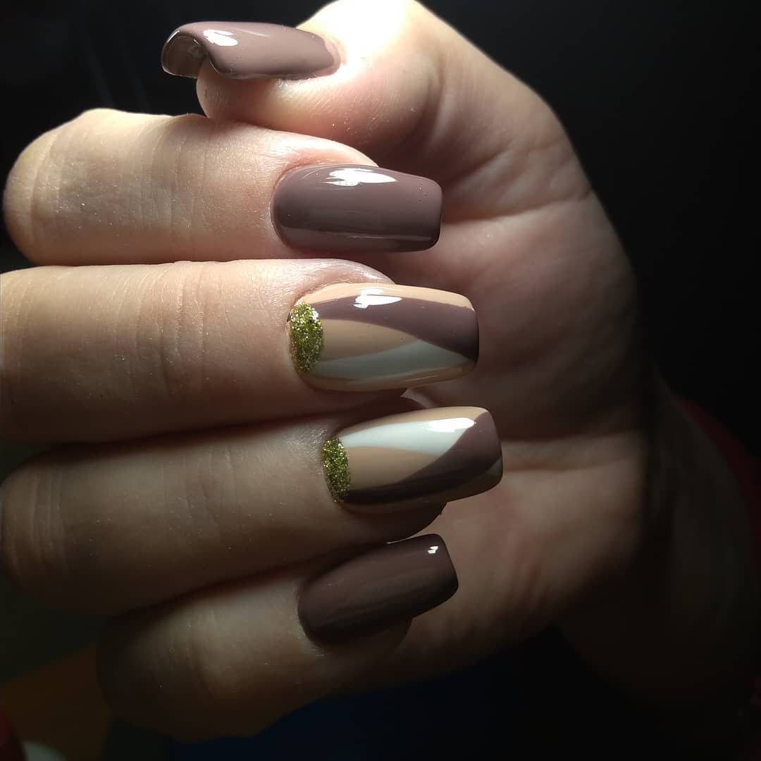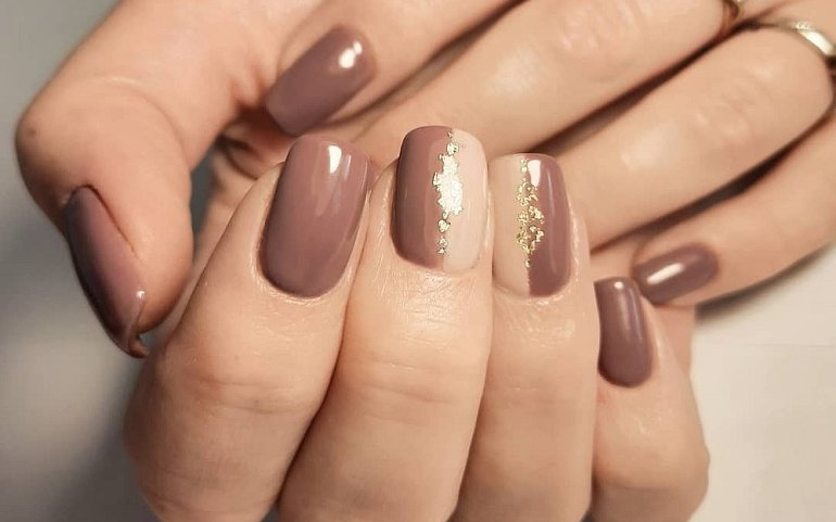 Оттенок лака чуть-чуть светлее вашего оттенка кожи, но при этом сильного контраста нет. микс различных оттенков. Вовсе не обязательно использовать только один оттенок при покрытии. Вы можете подобрать несколько оттенков и наносить их поочередно или хаотически. При таком нанесении можно использовать до 5 различных оттенков. Отлично сочетаются оттенки розового и коричневого. нюд камуфляж. Еще один способ сделать очень мягкий акцент на своих руках. Используем оттенки розового, хаки и коричневого. мокка и золото. Необычный вариант покрытия, который смотрится празднично и нарядно, но при этом не утрачивает своей сдержанности и элегантности. Основа такого маникюра — это, конечно, мокка. Золото добавляем совсем немного золота на кончиках ногтей. При таком сочетании вам может и не понадобятся дополнительные украшения на руки или пальцы. Одного кольца вполне достаточно, чтобы получить прекрасный и завершенный образ. нюд и лаванда. Еще один интересный вариант для покрытия, если хочется чего-нибудь оригинального. Сам по себе лавандовый оттенок довольно яркий, даже если взять самые приглушенные оттенки. А вот добавить немного лаванды к бежевому нюду — это идеально. Можно сделать любой небольшой лавандовый акцент на ногтях. нюд и минимализм. Тренд этого сезона — простота и лаконичность. Если уж добавляете узоры и геометрические фигуры, то не переусердствуйте. Всего должно быть в меру