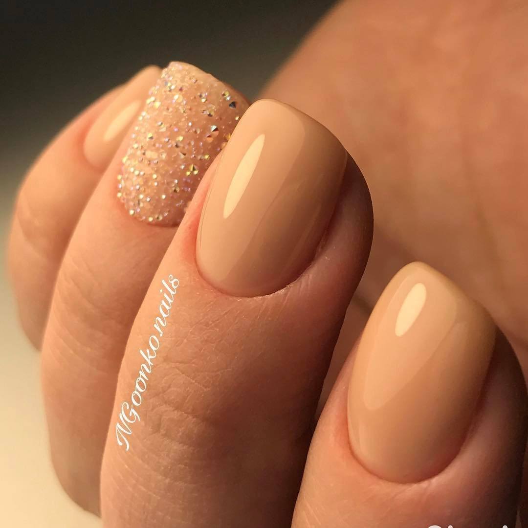 Однотонные нейл-арты – тренд нынешнего сезона. Кажется, что девушки хотят немного отдохнуть от сложного декора и наносят на свои ноготки нежные и мягкие оттенки. Огромное разнообразие нюдовых тонов поможет по-максимуму реализовать все варианты однотонного дизайна ногтей. В этом поможет блестящий декор блестками, стразами, пайетками, кристаллами Пикси, втиркой и т.д.
