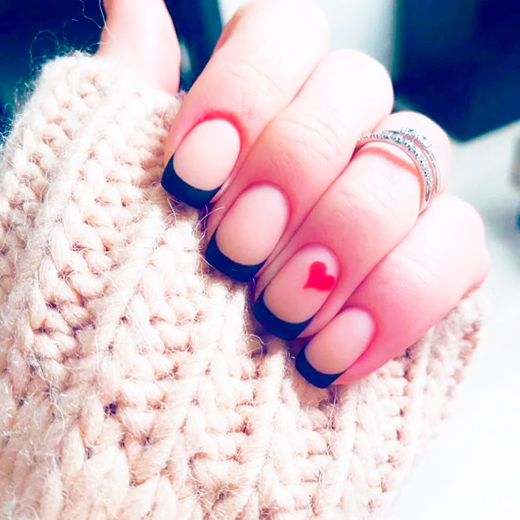 В этом случае особое внимание стоит уделить вариациям маникюра в минималистичном стиле. Поверьте, миниатюрные цветочки, одиночные камешки у основания ногтей, блестящая лунула или имитация французской улыбки лентой смотрятся на матовом фоне не менее привлекательно, чем объемные композиции и сложные художественные росписи