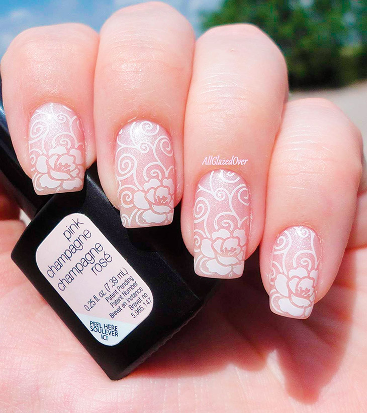 Стемпинг поможет придать изысканности вашему маникюру, если вы таким способом нанесете кружевные узоры.