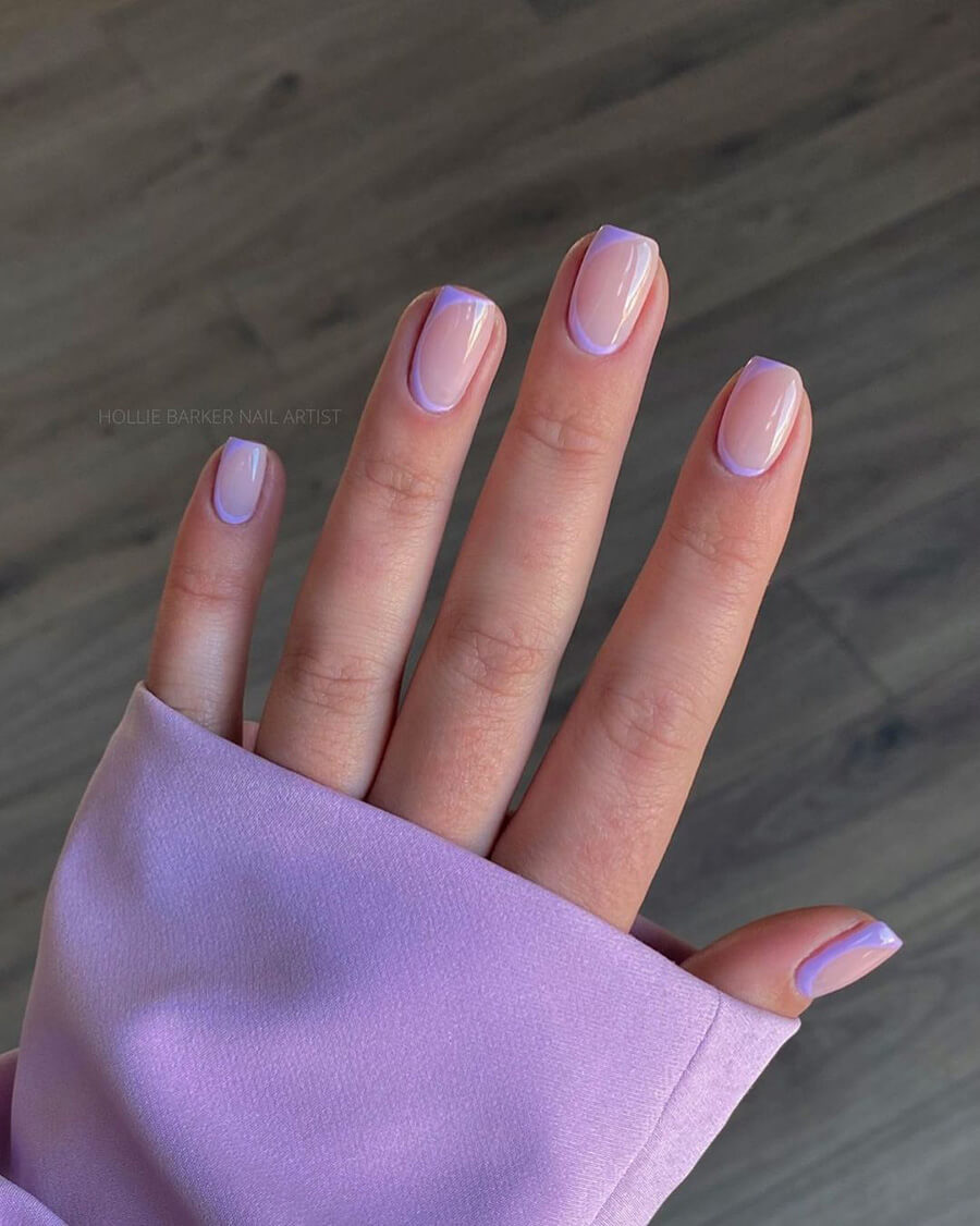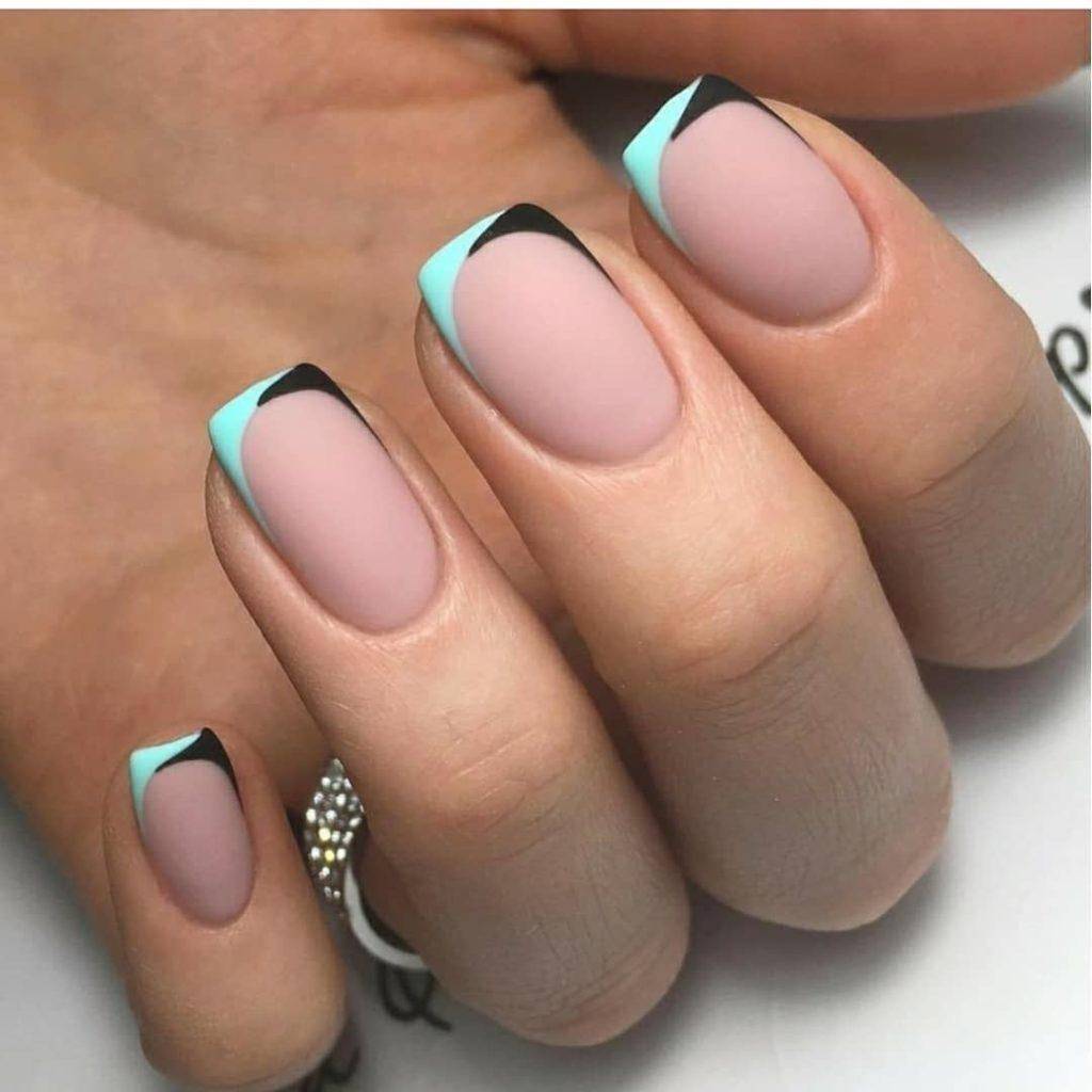 Красивый французский маникюр великолепен, особенно в матовом лаковом покрытии. Френч делают в чёрно-белом, либо фиолетово-лиловом, добавив серебристого декора на начало ногтя.
