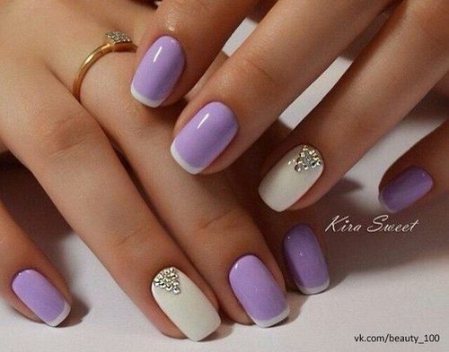 - Французский маникюр. Всю верхнюю часть можно украсить цветными бусинками.