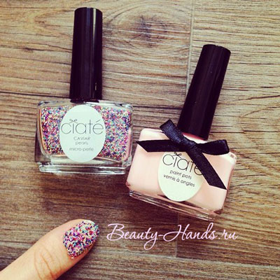 - Подарила модницам идею необычного маникюра компания Ciate. Именно наборы для икорного маникюра этого бренда впервые появились на рынке. Изначально комплекты Ciate Caviar Manicure были выпущены в трех цветовых решениях: белый лак и жемчужный бисер, черный лак и черные бусинки, розовая база с разноцветным бисером. Сегодня компания расширила свой ассортимент.