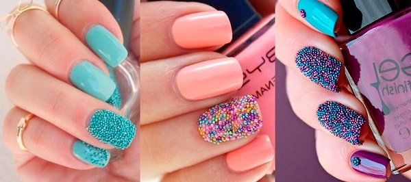 Вся оригинальность пальчиков находится в ваших руках. Не нужно быть большим профессионалом. Сделать икорный маникюр можно самостоятельно. Для этого только вооружитесь различными бусинками, красивыми лаками и вперед на смелые эксперименты.