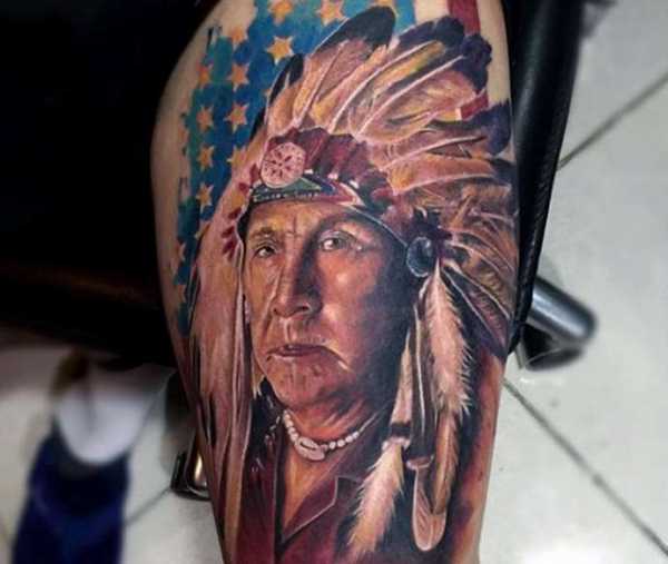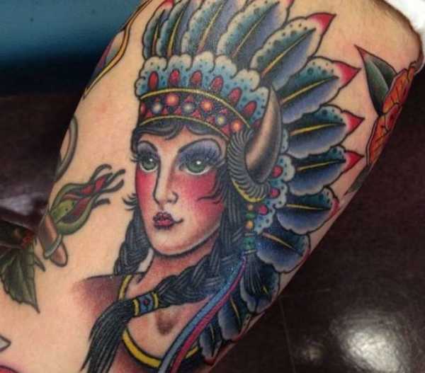 Татуировка индейца, как бы это странно не звучало, широко распространена среди самих индейцев. Именно так, в индейских племенах наносят изображение себе подобных на тело. Стоит также отметить, что подобная татуировка позволяется далеко не всем представителям племени, точнее исключительно вождям. Простой житель не имеет права носить татуировку с изображением индейца. Связано это, скорее всего, с какой-то особой иерархией внутри племени и полномочиями вождя, но не об этом речь.