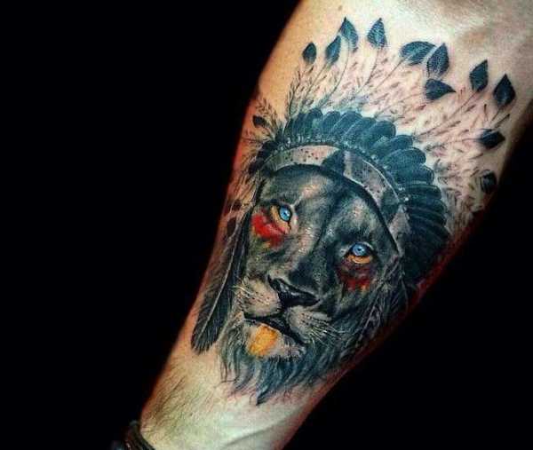 Тату индеец, а также девушка, волк, лев в венце из перьев: значение и эскизы