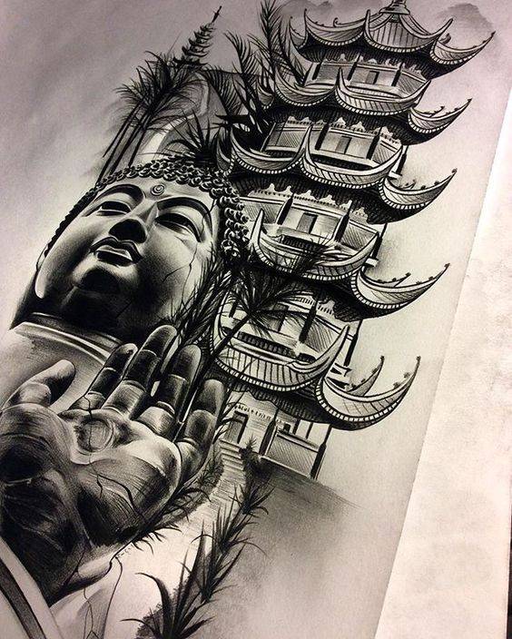 Разумеется, самой популярной буддийской татуировкой является изображение основателя данной веры — Будды. Оно несет в себе несколько значений и в целом выступает в роли талисмана для своего хозяина. Основной посыл изображения Будды — это вера в лучшее, просветление, изобилие и удача. Именно это, по мнению буддистов, является важнейшими критериями человеческой жизни. На фото ниже можно посмотреть, как выглядит эскиз буддийской татуировки.