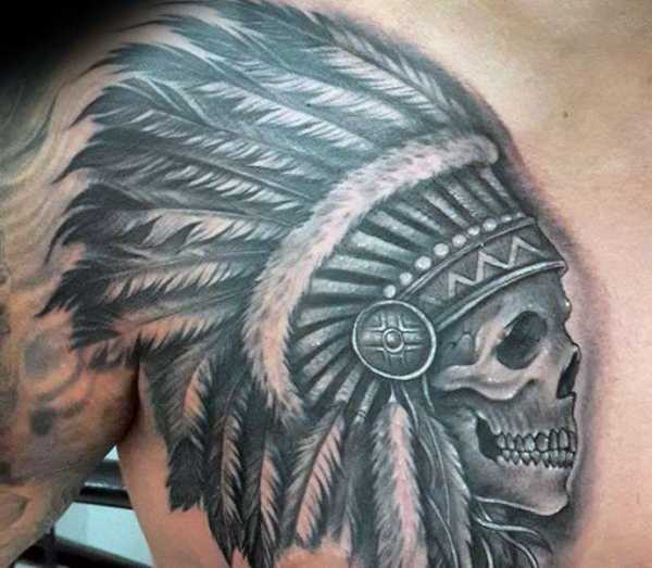 Череп индейца имеет разные трактовки. С одной стороны, мрачное тату отображает внутренний мир обладателя, характеризует его как фаталиста и пессимиста, осознающего бренность бытия. Череп во многих культурах считается знаком опасности и смерти. Однако сами индейцы интерпретировали образ иначе. Нанося подобное тату на тело, они обманывали смерть, которая, увидев свой «портрет», должна была отступить.