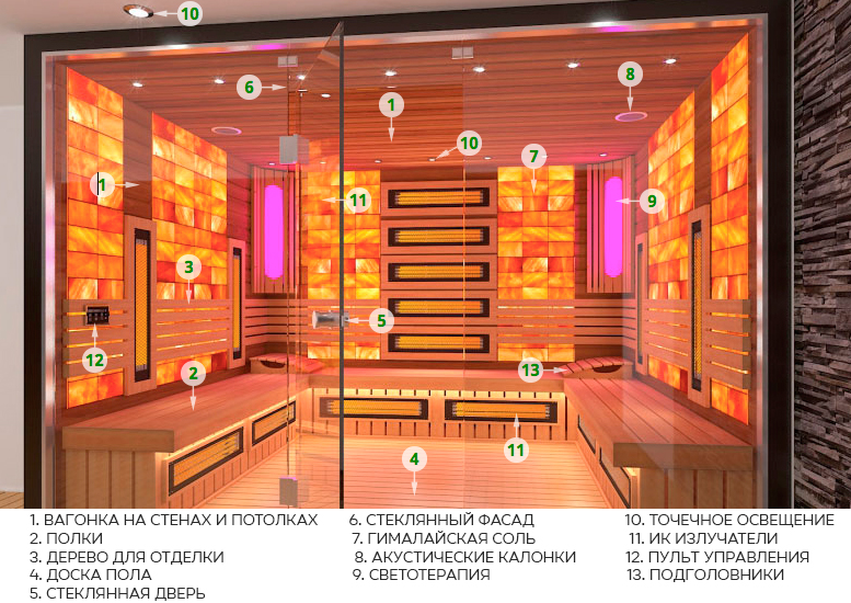 Сауну с инфракрасным излучением от сухой финской парной отличают следующие факторы: