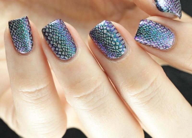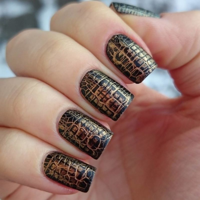 Можно изобразить кожу черепахи, ящерицы, крокодила и так далее. На фото представлены интересные варианты дизайна ногтей кракелюр.
