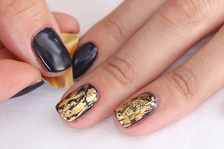 - Внутренней стороной прижми фольгу к ногтю и оторви резким движением;