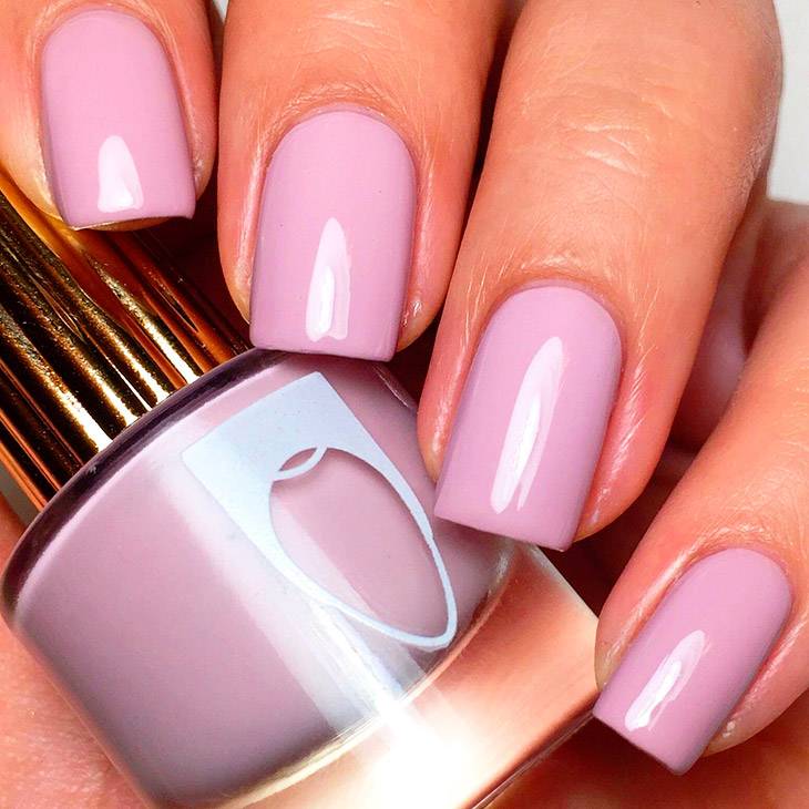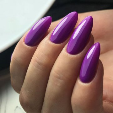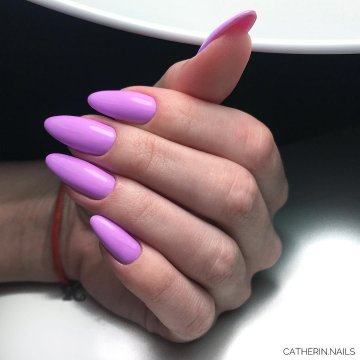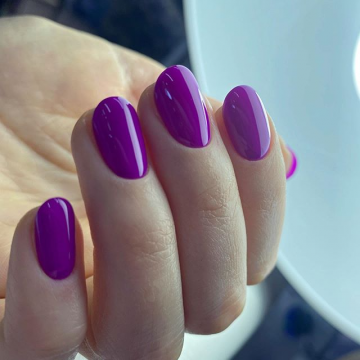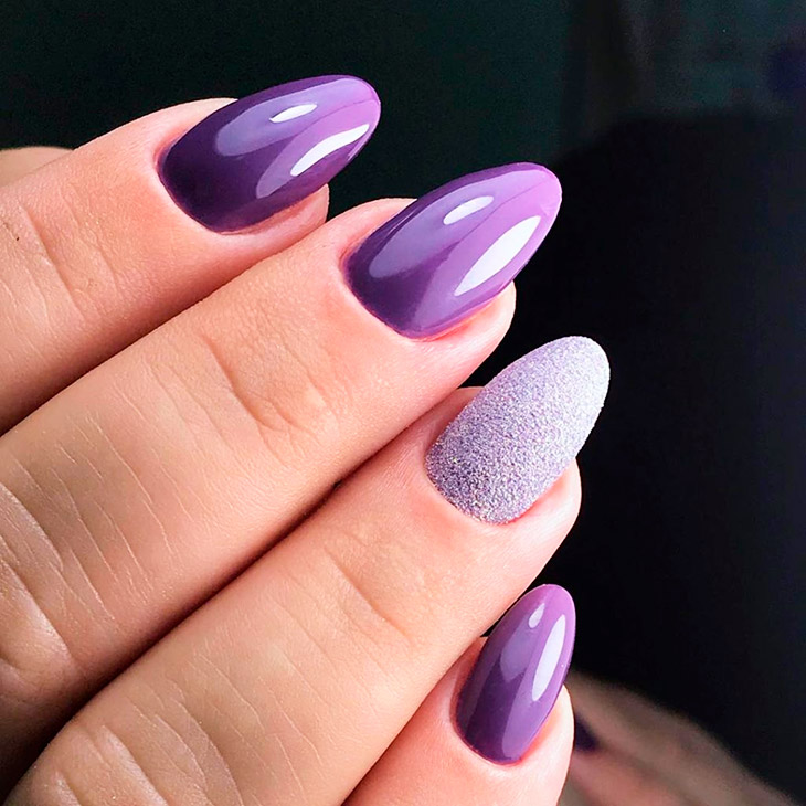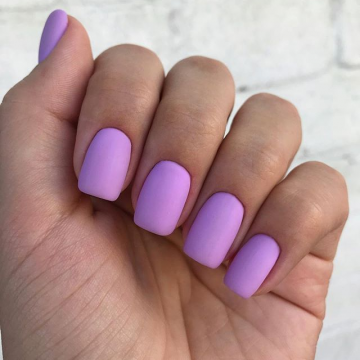 Однотонные лиловые ногти идеально подходят для повседневного стиля. При необходимости такой нейл-арт может быть дополнен втираемым пигментом.