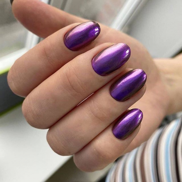 Решения с зеркальным фиолетовым маникюром станут хорошим как праздничным, так и ежедневным вариантом в этой цветовой палитре.