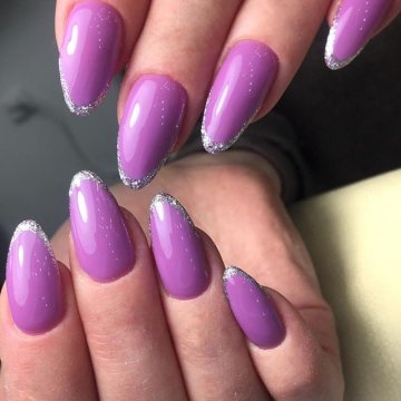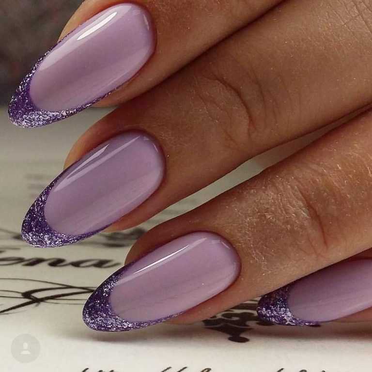 Как и в обычном френч-маникюре, ноготки крашеные белой полоской на кончиках ногтей, но вместо традиционного белого цвета используется сиреневый. Такой дизайн придает ногтям особый шарм и очарование.