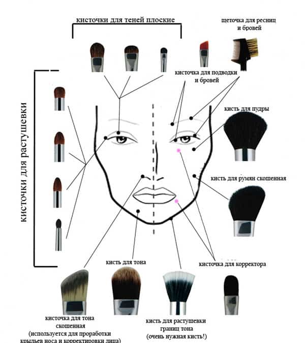 А лучше – три, чтобы одной удалить излишки рассыпчатых продуктов с кожи; Для прорисовки тонких линий важно использовать тонкие инструменты, а для больших плоскостей – широкие или объемные. При покраске не давите на ворсистую часть, а легко проводите ею по лицу