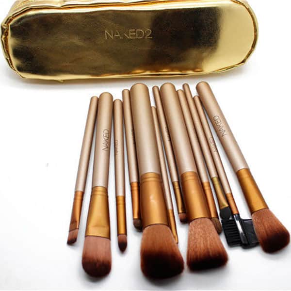 - Набор кистей. В арсенале имеются широкие объемные кисти для нанесения пудры и румян, средние и упругие – для тональной основы и консилера, тонкие – для губ, а также аппликаторы для макияжа глаз. Плотный натуральный ворс и длинные ручки упрощают процесс, косметика наносится более ровно.