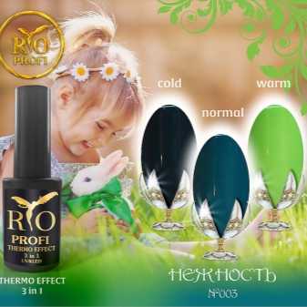 - Лаки с термо , эффектом так же присутствуют в обширной палитре гель -лаков Рио профи. Эти лаки интересны тем, что они меняют оттенок при колебании температурного режима,