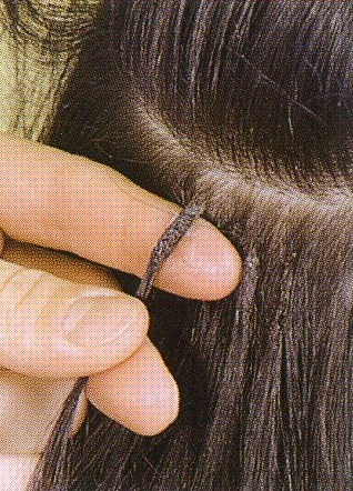 При испанском наращивании используются скрепленные у основания при помощи клея заранее подготовленные пряди волос. Застывший клей представляет из себя прозрачную капсулу. Мастер использует особый состав, который размягчает эту капсулу – она становится пригодной для сцепления с натуральными волосами — и вручную закрепляет пряди, в основании которых находилась клеевая капсула, на волосах.