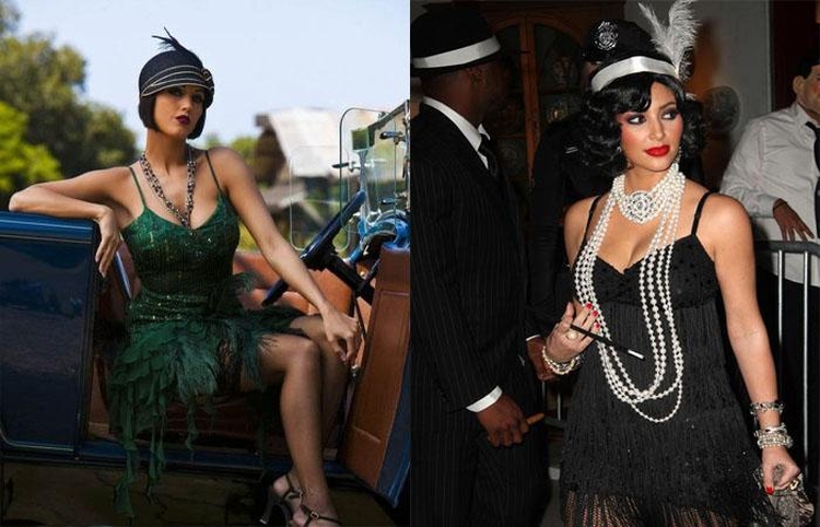 - головные уборы являются узнаваемой деталью стиля Гэтсби, повязки, аккуратные шляпки, чалмы, заколки щедро декорировались стразами, камнями, бисером, перьями по принципу — много блеска не бывает;