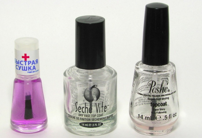 Они бесцветные. Их наносят на чуть застывший последний слой. Лаковая сушка для ногтей для обычного лака дает дополнительный глянец и укрепляет маникюр.
