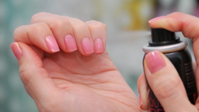 лака считается наиболее практичным средством подобного рода. Сразу же после нанесения последнего слоя лака распылите спрей на ногти и подождите указанное на упаковке время. Единственный недостаток спрея в том, что он попадает не только на ногти, но и на кожу. Конечно, ничего страшного это за собой не влечет, лишь небольшие неудобства.