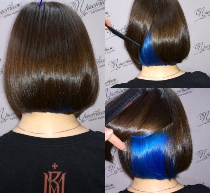 Короткая стрижка боб и мелкое синее мелирование на черном фоне — неплохой вариант для молодой энергичной девушки. (рис.4)