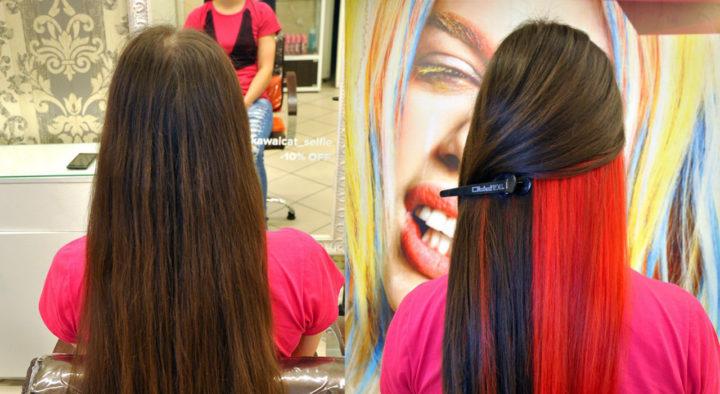 Если вы дано мечтали внести в свой образ яркую деталь, но не решались на кардинальную перекраску в красный или синий цвет, то скрытое окрашивание позволит вам добиться желаемого эффекта, более хитрым путем.