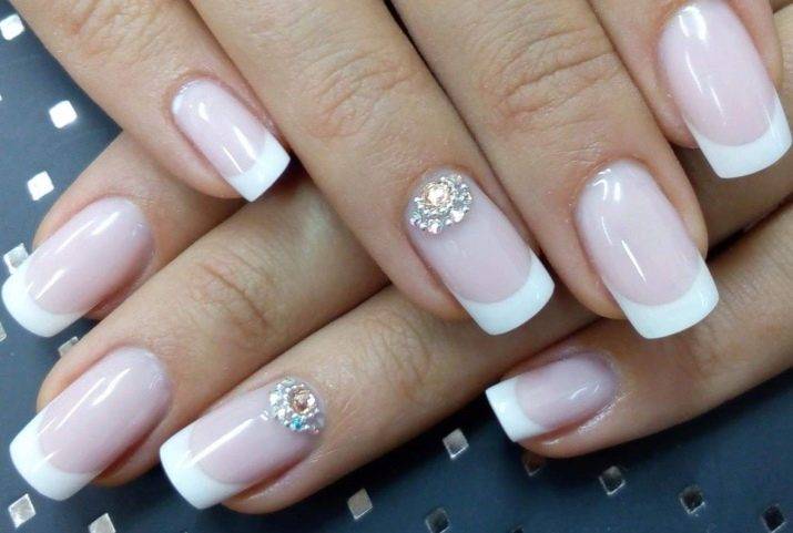 Если используются в качестве декорирования стразы или песок, то сверху наносится финишное покрытие, которое не дает им отслаиваться со временем при соприкосновении с водой. Очень хорошо смотрится матовый френч, в продаже есть специальные лаки и гели. Ими просто пользоваться, а технология нанесения такая же, как и в любом другом случае. Чтобы проще было удалять лак с кожи, на случай, если покрытие случайно попадает на нее, необходимо в самом начале намазать руки жирным кремом.
