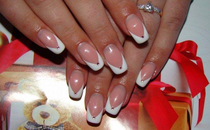 - Для выполнения французского маникюра понадобятся дугообразные полоски с наличием крутого изгиба, что зрительно увеличит длину пальцев. Для праздничных мероприятий желательно подготовить более интересные заготовки. Отлично подойдут клинообразные и кружевные формы.