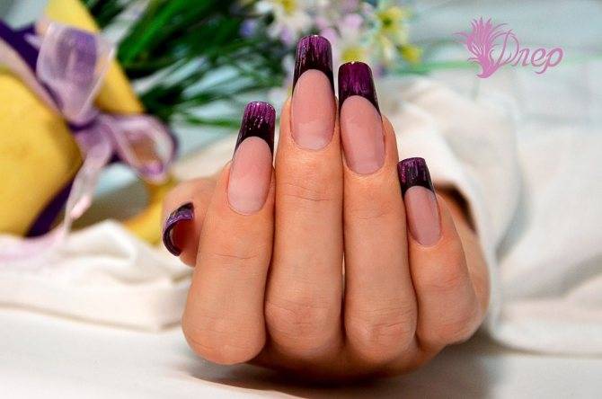 Французский маникюр, если он выполнялся, полимеризуется на протяжении двух минут под лампой;