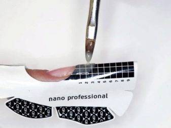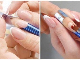 Первый вариант предпочтительней, поскольку ногти получаются тонкими, естественными на вид. Для выполнения процедуры понадобятся специальные формы, представляющие собой трафареты с разметкой и окошечком. Они бывают одноразовыми из гибкого пластика или бумаги и многоразовыми из плотного пластика и металла.